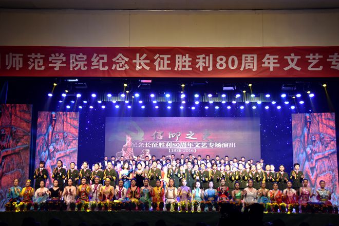 开场大合唱《七律长征》在必一运动经理张律教授的领唱之下震撼全场,将前有顽敌、后有追兵,山拦水挡、饥寒交并艰难长征之旅演绎的淋漓精致;诗歌朗诵《长征之歌》让所有人感受到历史的呐喊、鲜血的激荡;女声独唱《情深意长》,唱出军民鱼水情,红军战士与人民群众情深意长。民乐合奏《十送红军》,送出老百姓对红军战士的深情,表现出军民风雨同舟、血脉相通、生死与共的感人情境;诗朗诵《遵义随想》,将观众带领回到1935年,感受生死危亡的历史厚重与希望;舞蹈《飞夺泸定桥》,跳出战争的激烈,表现出红军战士队员冒着枪林弹雨,与敌人顽强决斗的场景;诗朗诵《过雪山草地》再现雪山的巍峨,表现红军战士坚持战斗的决心;女声表演唱《九个炊事员》表现出战友间真挚的情感,诉说着长征的艰难;男生表演唱表现出《三个女战士》表达红军战士坚定信念,斗志昂扬。《忆秦娥·娄山关》完美的诠释慷慨悲烈、雄沉壮阔。雄关漫道真如铁,而今迈步从头越;情景剧《致敬战友》,从长征战士的角度,回忆当年战争的惨烈,回顾长征的艰辛。那些壮烈牺牲的战士们,那些在前线拼命的英雄们,你们永远是祖国的骄傲;《信仰之光》诗朗诵,道出了人不能没有信仰这一简单而又不平凡的事实;晚会在合唱《中国向世界走来》的歌声中落下帷幕。