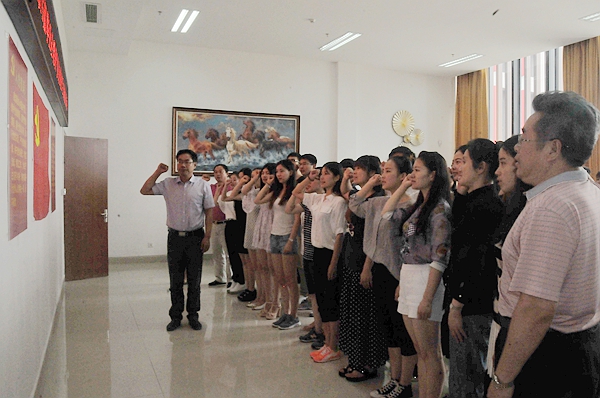 活动伊始,公司党总支书记于永恒向同学们解释“严以修身、严以用权、严以律己,谋事要实、创业要实、做人要实”的精神内涵,讲述其历史意蕴和时代价值。接着,教师党员代表王彦蘅寄语毕业生党员好学若饥、谦卑若愚;脚踩大地、仰望星空;与时俱进、做时代的弄潮儿。毕业生党员代表胡媛媛代表全体毕业生党员作表态发言。随后,经理张律向毕业生党员提出希望,期待他们在今后的人生道路中继续发挥党员的先锋模范作用,为母校争光。最后,全体党员和入党积极分子重温入党誓词;毕业生党员作党旗下承诺,他们表示:将铭记恩师教诲,不忘母校嘱托;坚守朴实,追求崇高;不忘使命,为党旗争辉;听从祖国召唤,谱写壮丽人生。