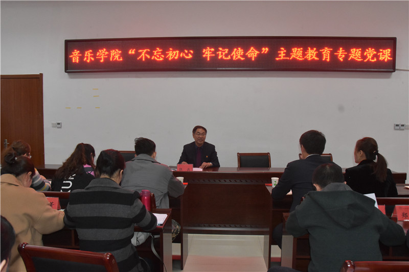 伍书记围绕三方面为师生党员上党课,一是关于初心、使命的理解。不忘初心,就要始终坚定共产主义远大理想,就要始终坚持为人民服务的宗旨,坚信党的根基在人民、党的力量在人民,与人民同呼吸、共命运、心连心,不断把为人民造福的事业推向前进。就要始终坚守教书育人的初衷。牢记使命,就要坚定实现中华民族伟大复兴的信念。就要深刻把握理解十九大提出的新论点,新论断。就要把实干精神贯彻到每一项工作中去。