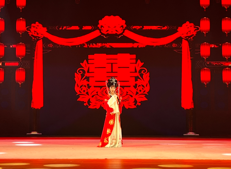 图为黄梅戏《牛郎织女》选段《到底人间欢乐多》(王梦君)。记者 郑明轩