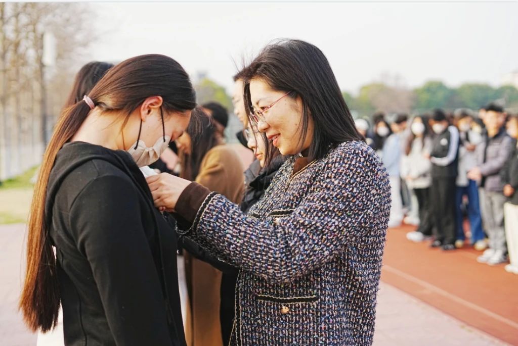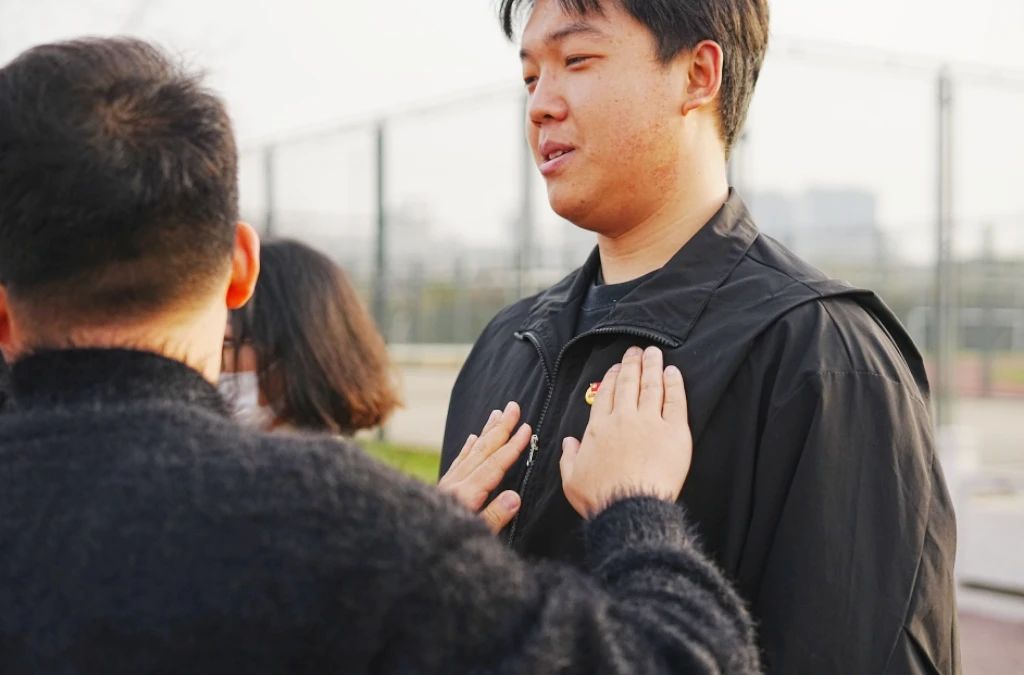 党员教师为新团员佩戴团徽,以庄严仪式传递责任担当。一枚枚闪亮的团徽,承载着组织的期望,更点燃了青年学子砥砺奋进的青春热情。、