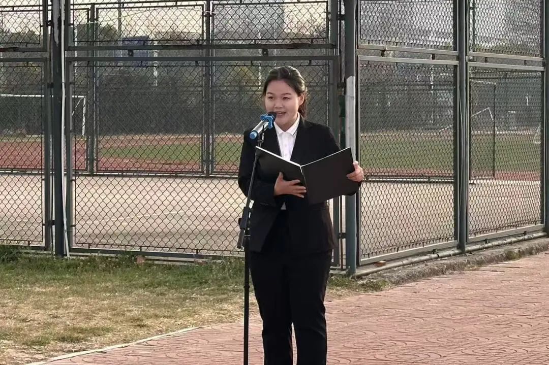 员工代表刘树畅、潘明熠以"安全护航 奋斗扬帆"为主题作国旗下讲话,号召同学们筑牢安全意识,以青春之我书写奋斗华章。
