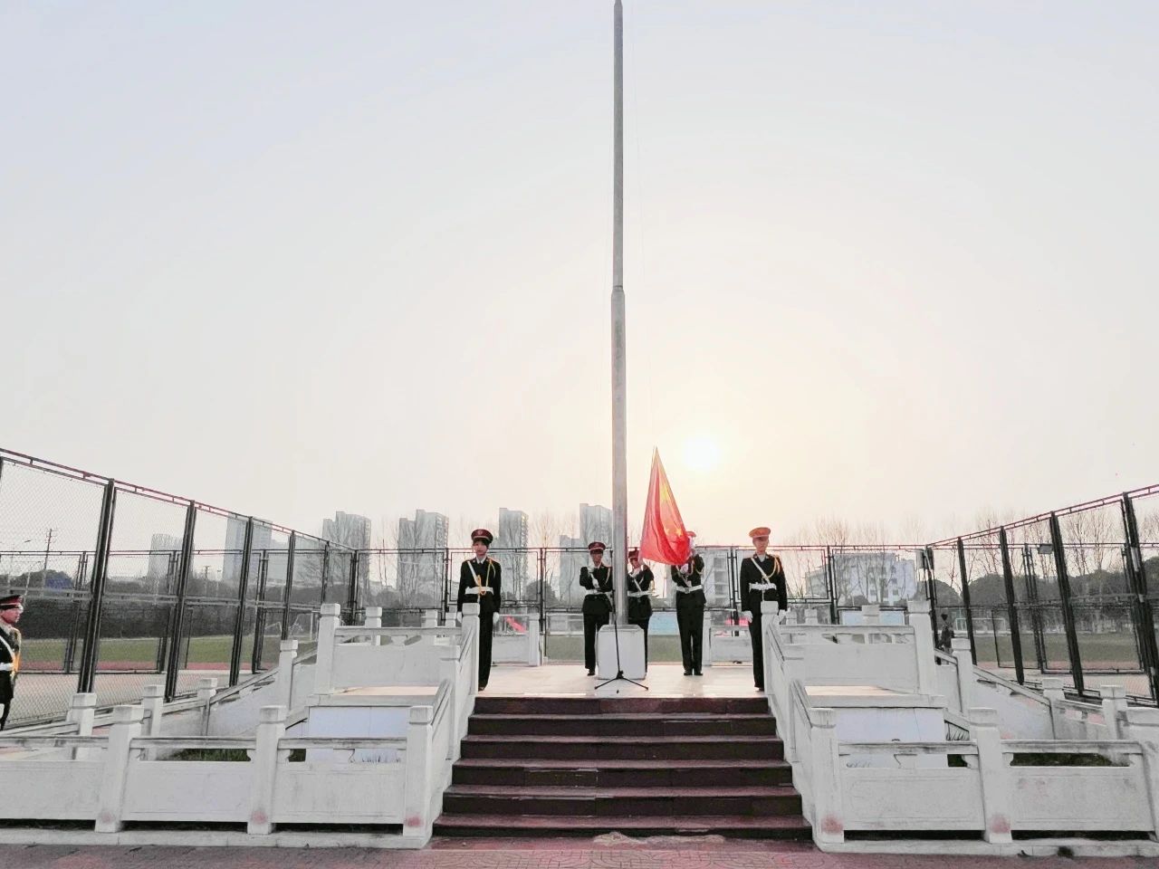 在嘹亮的国歌声中,鲜艳的五星红旗冉冉升起,全体师生齐唱国歌,行注目礼。