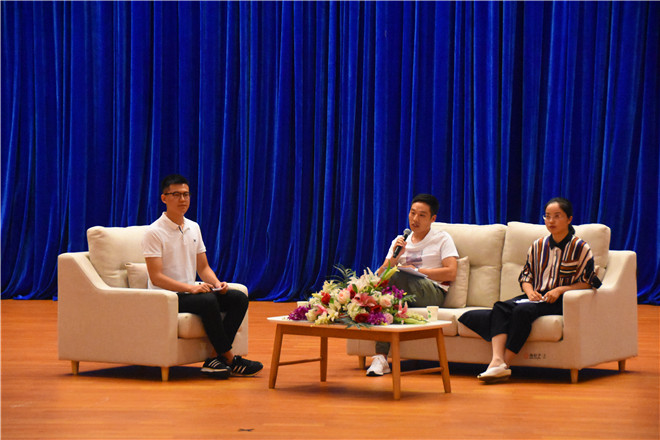 第二场胥恒赫老师结合自己成长的艰辛和学习生活经历的困境,娓娓道来,一波三折的中学求学历程及沉静后的爆发深深打动着在场员工。他还分享了四点心得:一是面对挑战时不轻言退缩、放弃;二是要孝顺父母,学会分担,同学之间增进包容、理解;三是抓住机遇,锻炼自己,多向老师请教,向学长学姐学习;四是落实想法,早做准备,坚定信心,不要犹豫。