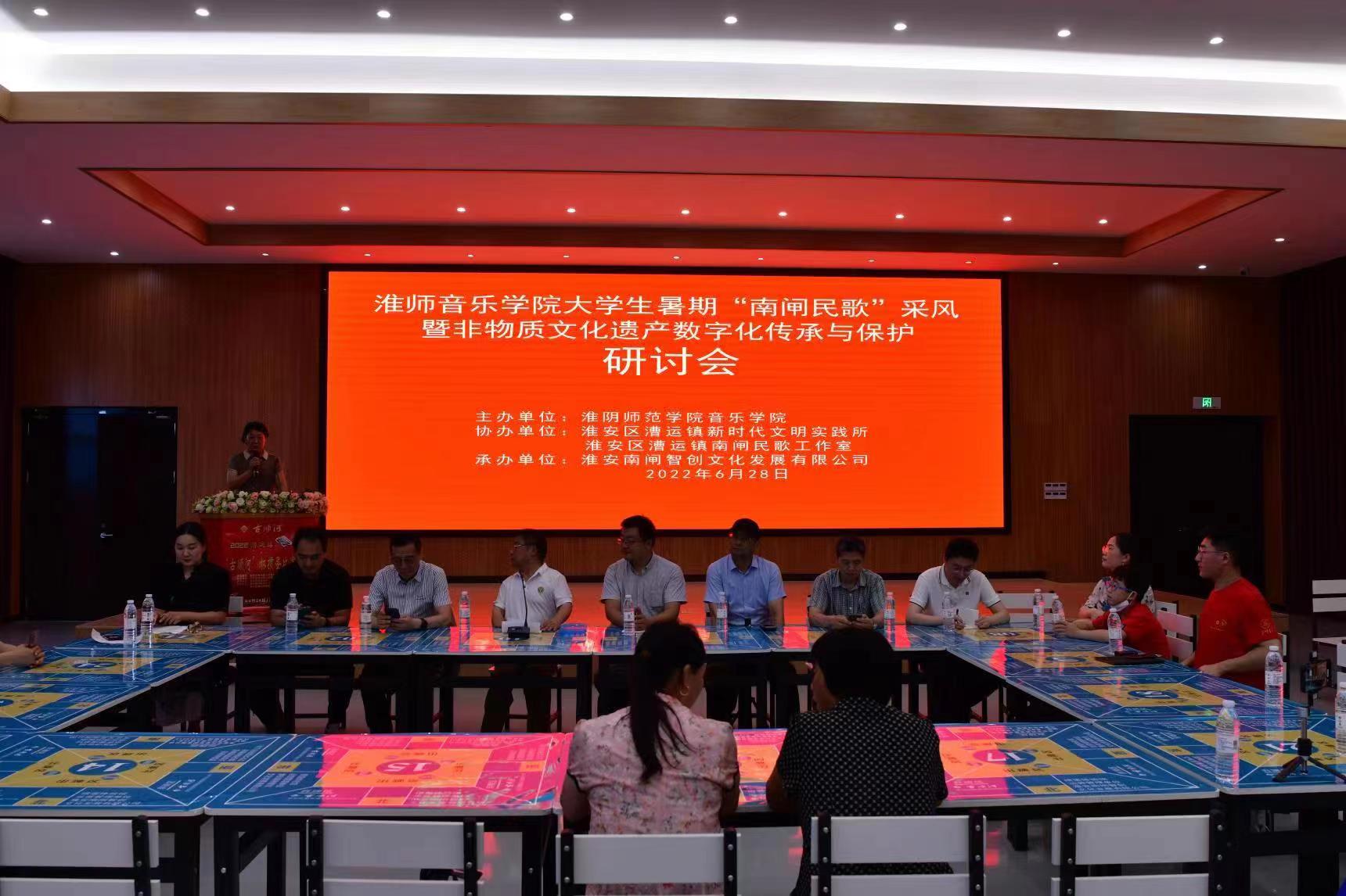 “乐之音”实践团前往淮安漕运镇开展国家非遗“南闸民歌”的历史与传承调研。实践团在徐言亭、陈培刚等老师的带领下,与漕运镇新时代文明实践所、南闸民歌工作室、南闸智创文化发展有限公司代表相聚漕运镇民歌大舞台,开展非物质文化遗产数字化传承与保护研讨活动。研讨会上,南闸民歌传承人金矿老师向实践团介绍了南闸民歌的历史传承与发展,在金矿老师声情并茂的讲述中,实践团成员感受到南闸民歌作为非遗文化承载了运河河畔人民的民风民情,也感受到金矿老师作为传承人对传承传统文化的热爱和坚守。