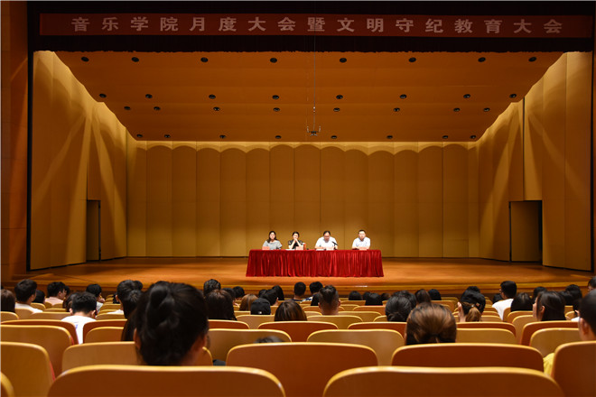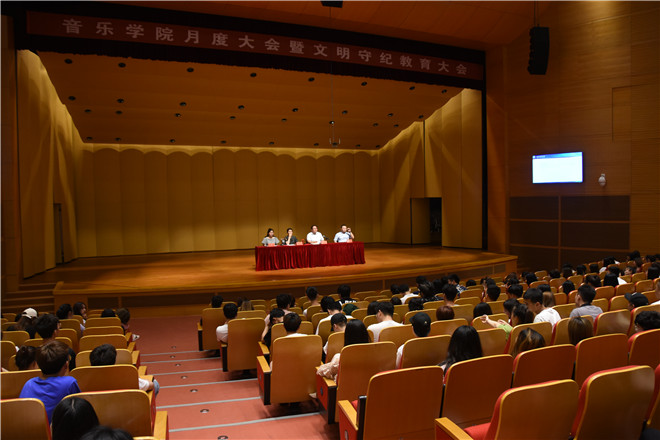 6月5日晚七点,必一运动在音乐厅召开月度大会暨文明守纪教育大会。公司党委副书记殷成志,学工办副主任郑建春,辅导员张菁菁、涂聪及16、17、18级全体员工共同参加大会,会议由张菁菁老师主持。