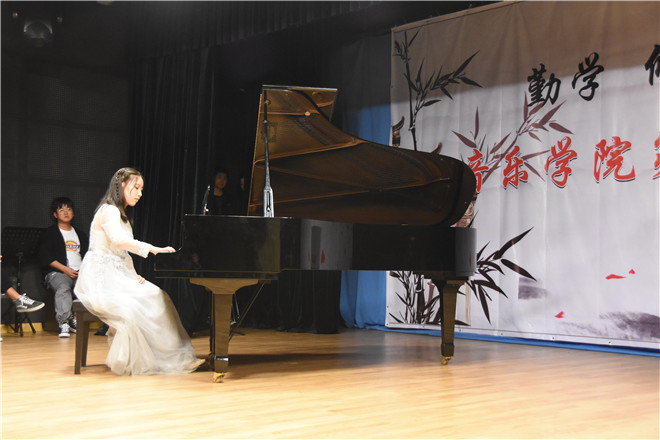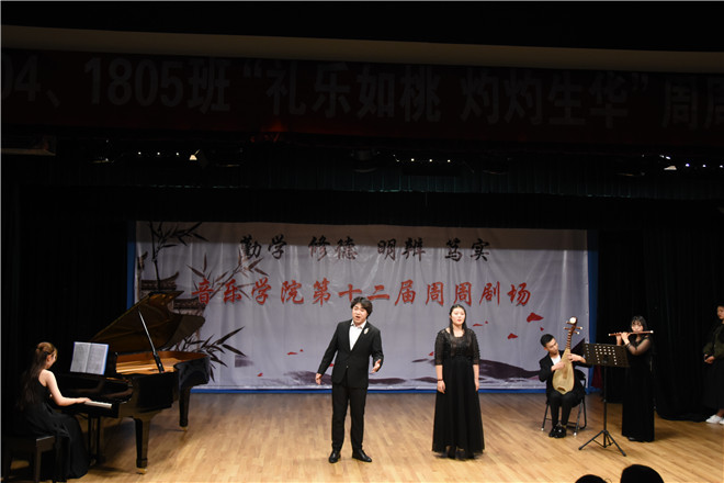 《波尔卡》弹簧管二重奏,演奏刚开始就给大家带进波尔卡舞曲活泼欢快、热烈的气氛中。《你如春风踏歌来》由刘丽婷,刘梦晴等人合唱,南疆携手北国走来,走成一片迷人的花海;丝路挽着东海走来.走出一派自信的风采。棵棵秧苗都拔节竞赛,滴滴汗水都如花盛开。《九儿》由杨佳兴为我们演唱,歌词表达的是对家园的守望,这首歌曲以女主人公“九儿”为第一人称,通过韩红富有故事性的高亢声音,与反复却有力的歌词,将作品中九儿坚强隐忍的性格,一生的爱恨情仇与跌宕起伏的情节淋漓尽致的表现了出来。《秦土情》筝与钢琴的演奏 ,演奏出了一种难以割舍的思乡情怀,对家人的无限思念。真是扣人心弦。