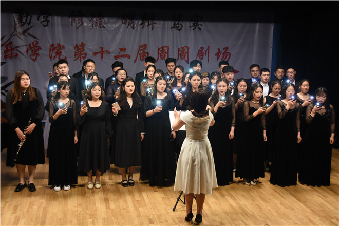 最后1804、1805全体人员合唱《You raise me up》,告诫人们在任何艰难压抑的情况下,靠着上帝胜过自己,胜过环境。演出在全体同学的热情歌唱中结束了。梁宏亮老师点评到,这是一场专业性较强的表演,是非常不错的,可以看出大家平时的刻苦练习,不过也有两点印象最大的不足的地方,第一就是大家的个人技能都挺好但节目的融合度不够没有眼神上的交流,所以希望大家能够加强思想上音乐上的默契。第二就是舞台经验不够,自信心要再加强,形体仪表等各方面都可以表现的再舒服流畅。希望与同学们一起携手努力进步,将必一运动周周剧场继续发扬下去。