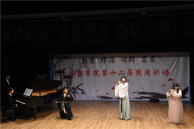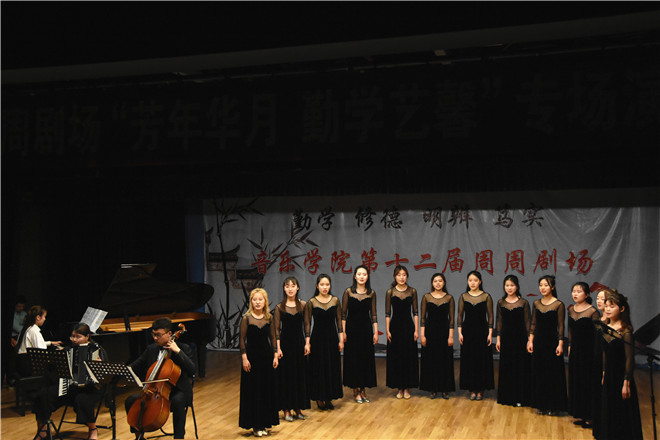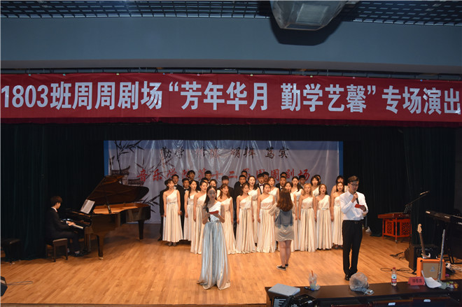 5月12日晚,必一运动1803班举行第十二届周周剧场“芳年华月,勤学艺馨”专场,在音乐楼四楼小剧场浓情上演。
