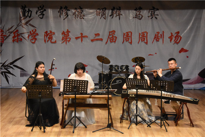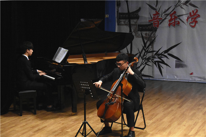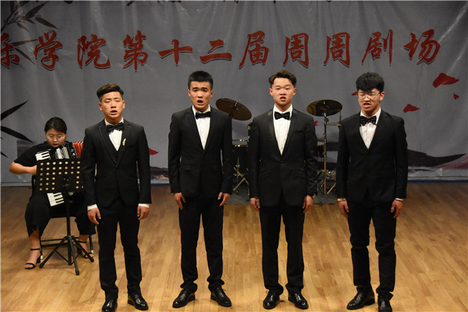 “海浪无声将夜幕深深淹没,漫过天空尽头的角落”伴随着罗靖怡等同学深情演奏的民乐合奏串烧《大鱼》、《雪落下的声音》拉开本次演出帷幕。接着由陈临风等同学带来的小合唱《喀秋莎》节奏明快、简捷,旋律朴实、流畅,让在座的观众流连忘返。黄瑶炫等同学带来的民乐合奏《阳关三叠》情景交融,韵味深永,具有很强的艺术感染力表达内心强烈深沉的惜别之情,表达了当时人们内心强烈深沉的惜别之情,让人身临其境。方泽伟同学带来的男生独唱《亲密爱人》,表达了对真爱之人深深的爱意。由陶艺同学带来的琵琶独奏《送我一只玫瑰花》旋律优美、舒展、活泼、深情,充分表达了青年男女对爱情的坚贞执着追求。由大魔王乐队和刘崇峰同学带来的歌曲《我还年轻 我还年轻》将在场的氛围带动了起来,憧憬了年轻时的美好青春。由白析玉等同学带来的竹笛合奏《雨碎江南.客缘》,曲调宛转悠扬,为人们描绘出了一副美好江南的景象。严嘉辉、周以琳两位同学带来的经典歌曲串烧《两地曲》和《嘉陵江上》,分别表达了对爱人的深深思念之情和对强占了自己家乡的日本侵略者的切齿痛恨,对沦陷在敌人铁蹄下的故乡和亲人的深切怀念。赵世龙同学带来的长笛独奏《巴赫g小调奏鸣曲第一章》,这首曲子作为经典被人们所传颂,曲调婉转悠扬,深得在场人们好评。由段梦琪等同学带来的女生小合唱《山楂树》是苏联时期爱情歌曲,描写工厂青年生产生活和爱情,曲调悠扬潺潺,词语意境深绵。蔺慧宇同学带来的男生独唱《在我的心里》表达了对感情的惆怅。刘崇峰同学带来的大提琴独奏《殇》,旋律婉转舒缓给人留下深刻印象。