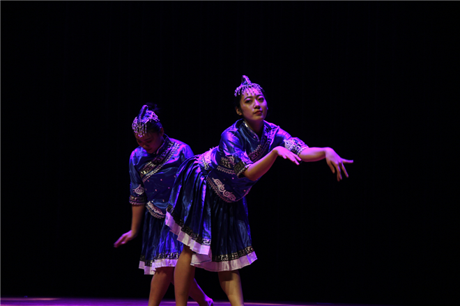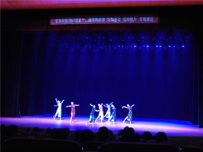 第一支舞蹈《金陵十三钗》由13个女孩演绎,“十三钗”指得是13位侠肝义胆的妓女,为保护女员工,去赴一场悲壮的死亡之约,最终十三名女子除了玉墨之外无一生还。随着一段热歌响起屏幕上显示出一张张1607班同学们的照片记录她们三年来的成长历程。古典舞《休·诉》在李洁超行云流水婉转柔情的表演下给人留下深刻印象。一段热情彪悍的蒙族舞蹈跳入眼前,有时如矫健的大雁,还有活泼多样的马步给现场的观众领略了别样的草原风情。古典舞《春江花月夜》以月为主体,江为场景,描绘了一幅幽美邈远、惝恍迷离的春江月夜图。也正是舞者的优美舞姿让大家感受到辽阔,宁静的意境。热舞《BABE》由6位热情似火的姑娘换上火辣的服装,可以说现场气氛十分活跃。将观众从上一个古典景色中带回潮流年代。《同行》绍语轩,张佳蕊,秦梦忆,陈姝月四位同学分别将两个女兵在极其恶劣的生存环境下,因水而产生一段生离死别的动人故事演绎的淋漓尽致,《同行》带给大家的震撼不仅仅是她们绝妙的舞姿,更令人震撼的是,当代女兵舍身忘己的大无畏精神。《蓝》一支现代群舞,表现人物的复杂,细腻的思想感情,让人联想到自己的生活状态,通过舞蹈队形、画面的更迭、变化和不同速度、不同力度、不同幅度的舞蹈动作、姿态、造型的发展,能够创造出深邃的诗的意境,具有较强的艺术感染力。