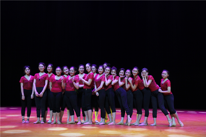 演出的尾声,由1607所有同学带来组合《身韵》“身”指形体外部的动作,它表现为形形色色的体态千变万化的动作及动作间的连接,“韵”指内在的神韵,气质,韵律,包括神、劲、律。1607所有同学一气呵成,晚会也在她们行云流水的动作中圆满结束。