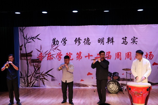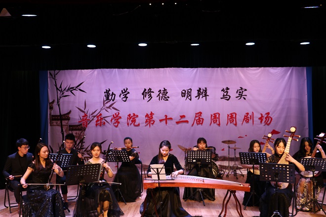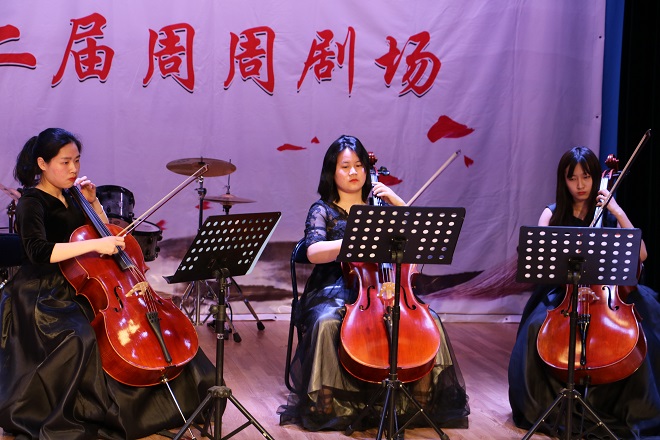 演出结束后,郑怀佐老师就此次活动进行了点评,他讲到周周剧场正在由业余向专业发展,主要强调剧场的音准、音色、节奏和速度的重要性,尤其器乐作品加强基本功的训练,“台上一分钟,台下十年功”努力训练才能从容不迫;另外,合奏伴奏等要加强配合,讲究旋律性;老师还对舞台礼仪非常重视,表扬了班级优秀的礼仪表达。