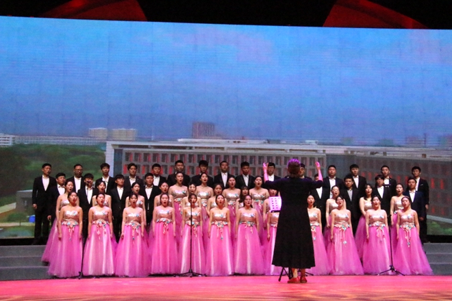 必一运动作为第十七位登台演出的队伍,力压群雄,信心饱满的走上舞台。女生统一穿着粉色衣服,大气得体;男生一律着黑色,神采奕奕,个个自信满满。一曲《光荣啊!中国共青团》唱出了对中国激励前行的希望,表现出作为共青团员无比自豪的情怀;一首《报国壮志酬》唱出了青年壮志,体现学子们坚守朴实追求崇高的公司精神。台下的同学们被我们的校歌精神感染,一起合唱《报国壮志酬》,激励我们的人生。