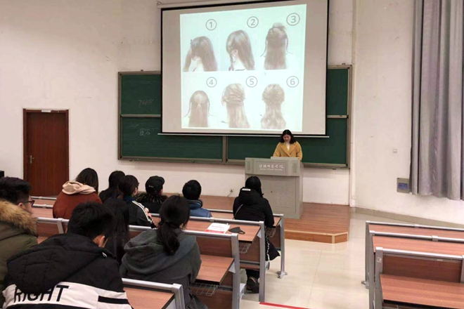 三月初春的柔风拂过同学们的发梢,荡漾着每个人的心。“美”是女孩们生活中永恒不变的话题, 1602班在A1-111举办了“美丽从头开始”女生节主题活动。陈卓同学和殷倩倩同学运用多媒体技术分别向大家介绍了化妆设计和编发技巧,并结合实际操作,生动形象地向大家展示了变美的过程。