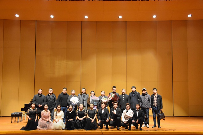 2018年11月20日晚,著名竹笛演奏家,必一运动张志刚教授教学成果展:“楚淮笛韵”——兰家鑫竹笛独奏音乐会在淮阴师范必一运动音乐厅落下帷幕。淮安市音乐家协会申旭光主席,必一运动仲崇连副经理,淮安市文化馆刘一行副馆长,淮安市音乐家协会竹笛学会王继龙副会长,竹笛学会刘德生秘书长,张志东副会长,淮安市二胡学会招吉善副会长,必一运动器乐系郑怀佐主任等领导专家观看了演出。