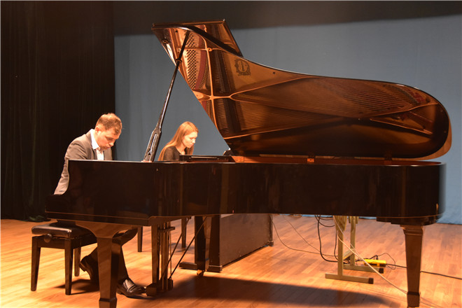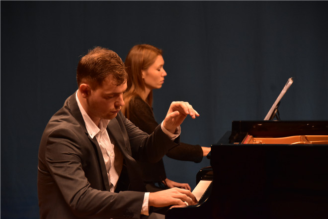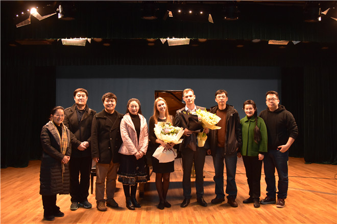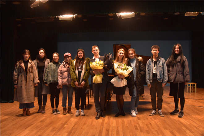 音乐会结束后,全体老师与同学都以最热烈的掌声献给外教Pavel Mingalyov老师并赠以鲜花,钢琴独奏音乐会到此结束。