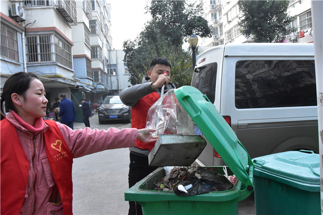 图为志愿者们帮助社区居民打扫卫生。记者 刘可心 摄