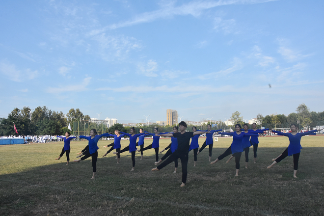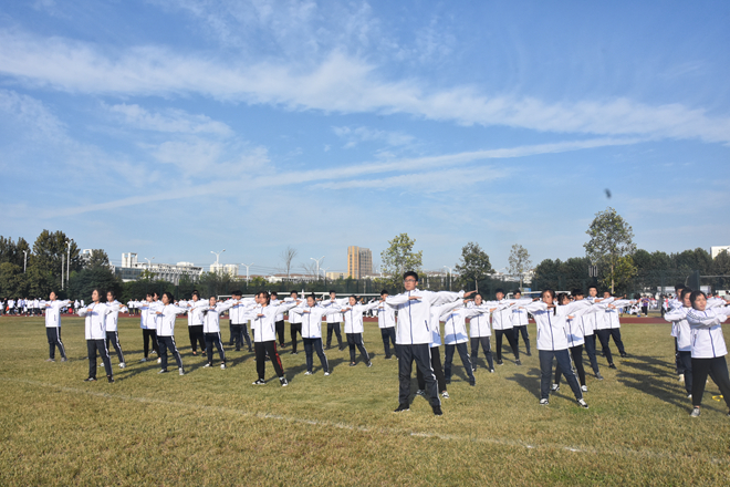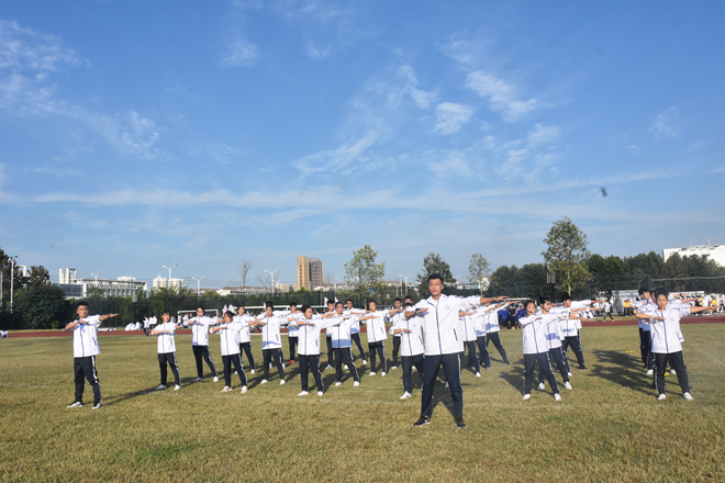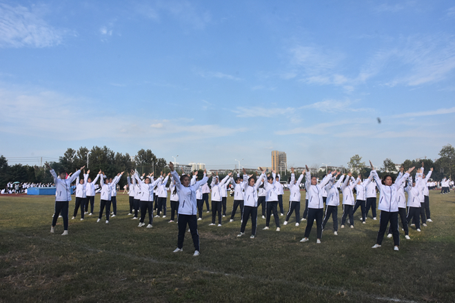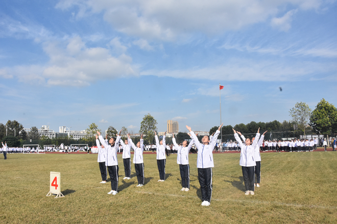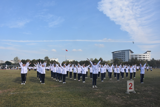 在听到广播里宣布比赛开始后,各班参赛队伍在本班领操员的带领下,迈着整齐有力的步伐,按顺序进入场地,并迅速以体操队形展开。班级口号响彻四方,领操员口令气势如虹。随着轻快愉悦的广播操音乐响彻操场,同学们精神抖擞、气宇轩昂,从伸展运动到整理运动,一伸手,一抬腿,每一式都刚劲有力。把广播体操简单规范、明快流畅。