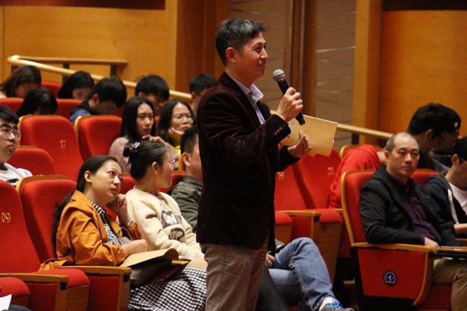 王老师对于民族音乐如何传承进行了三点讲解:进入、深入、融入。万变不离其宗,通过自己的感悟经历进行反思进而以主体身份正确的对待音乐文化,充分认识我国音乐文化底蕴。讲座结束后,陈培刚老师对作为高校来说,培养未来的音乐教师所学习的课程标准提问王老师,王老师认为:课程的设置,以所对应的方法、大家、观念一致的到行为形态的掌握从而进行深度学习。通过本次专题讲座,相信同学们对中国民族音乐文化能够更好的传承与发扬。