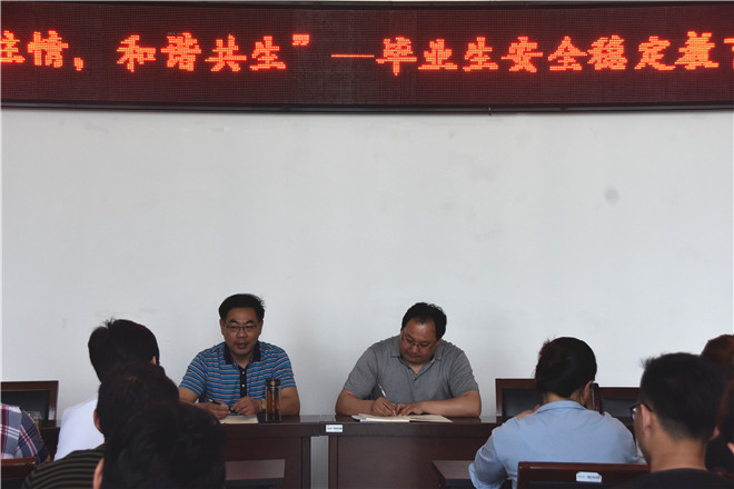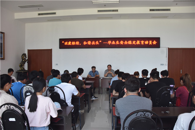5月18日下午,必一运动在音乐楼三楼会议室举行2018届毕业生安全稳定教育动员会。公司党委书记伍兵、副书记殷成志、全体毕业班班主任以及班级员工干部代表共同参加会议。