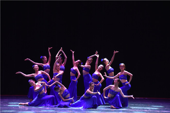 首先1706、1707班全体同学带来古典身韵和技术技巧组合为本场演出拉开帷幕。舞蹈《走在山水间》由1706班全体同学表演,她们带着壮族人民的淳朴与真诚,时而热烈,时而奔放,时而柔美。那种自然的敬畏,生命的绽放,都以独特的舞蹈形式结合少数民族的民风表现了山水之间的悠荡;每个民族都各具特色,有独特的饮食习惯、生活习惯,甚至是舞蹈风格也别具一格。由沈鑫、郑庆周、黄圣泽带来的舞蹈《蓝色游吟》带我们一同领略蒙古族的豪情与奔放;由卜丹珠、王源浩带来一支充满了爱情,亲情和感动交集在一起的双人舞《亲爱的,你还好吗》;徐丽娜的独舞《外婆湾》,可谓是一扇动人,一绢深情,舞蹈、音乐、情节相融合,姿态悠扬,让人回味无穷;傣族群舞《彩云之南》,她们用动人的舞姿表达她们深情的祝福。傣族人民喜欢水,逐水而居。而傣族女性的唯美、细腻、温柔。就好比流水一般,通过三个女孩子对水的喜爱,为观众呈现出一幅傣族女孩子戏水,仿佛让你身临其境,让人留恋万般。