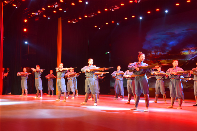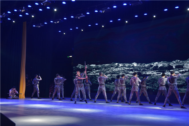 舞蹈《奔赴》将战场之上,壮士们前仆后继奔赴战场,用鲜血染红旗帜,用铮铮铁骨铸成钢铁长城,不畏艰险,誓死不屈的精神演绎的淋漓尽致。