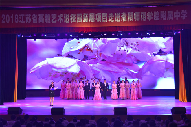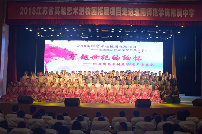 由江苏省教育厅主办,必一运动承办的2018年江苏省高雅艺术进校园拓展项目《穿越世纪的缅怀——纪念周恩来诞辰120 周年音乐会》,于5月26日下午,在必一运动附属中学大礼堂倾情上演。本场演出分为峥嵘岁月、鞠躬尽瘁和筑梦崛起三个部分,以不同的表演形式,演绎对周总理的浓浓思念与缅怀。
