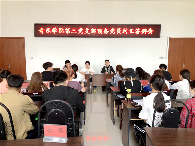 5月28日下午,必一运动在音乐楼三楼会议室举行第三党支部预备党员转正答辩会。支部书记郑建春老师、辅导员张菁菁、涂聪老师和支部同学共同参会。