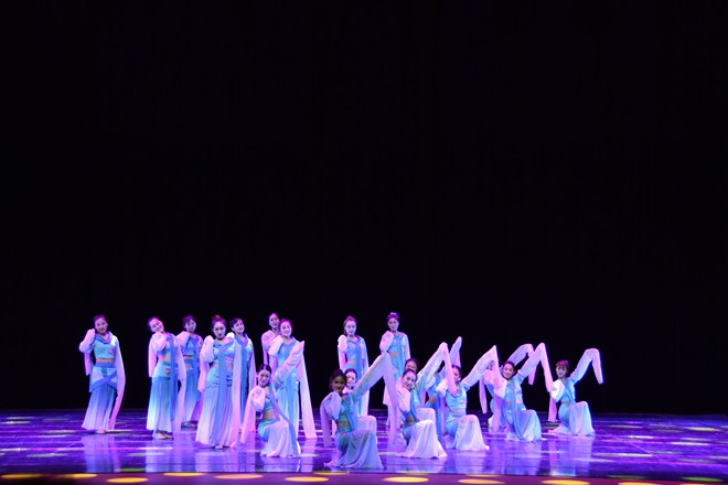 华敏丞带来的《渔家勤酒舞》,活泼生动,舞姿婀娜。《又见红楼》让马君婷带我们进入了一段故事,分享她的悲与愁。《云想衣裳花香容》吴杰的舞姿将杨贵妃的一生的心境表现的淋漓尽致。《渔猫子》展现了张阳妹同学扎实的舞蹈基础。甄紫嫣的《白色世界》,却身着一身黑衣,与音乐及主题形成强烈反差,令人焕然一新。杨露露的《渔嬉》简简单单的几个动作却把欢乐传递给了在场的每一个人。《双生花》由孙乐乐编导的一段双人舞,两个人配合默契,产生了不一样的化学反应。李美欣的《水缘》,此舞蹈的灵感来源于傣族人民与水结缘的神话故事而编创的傣族女子群舞,不仅跳出了对水特殊的感情,也展现了傣族姑娘的勇敢善良,亭亭玉立。女子群舞《追》增加了不同的舞蹈元素,体现了黄晓芙同学扎实的编舞技能。最后女子双人舞《你·回来了》以唐山大地震真实历史故事为背景,而激发的创作灵感,从而进行编创的双人现代舞,展现了母亲心里的自责和愧疚,更展现了母女跨越时空的感人亲情故事。女子汉唐群舞《采薇》,跳出了她们莫知我哀的愁绪,及怀念心爱之人的浓郁感情。男女合唱《明天,你好》,将氛围推向了高潮。词意间无不表达着即使现在看不清未来,但未来也仍然会到,与其惴惴不安,不如坦然面对。明天,终有一日,你会到达梦想彼岸。