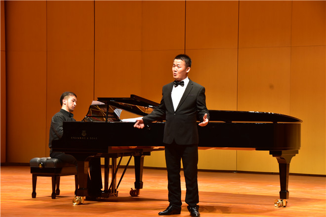 不论万丹老师的《我的深情为你守候》、《安宁安宁》还是刘泽昆老师的《不能尽孝愧对娘》等,都令我们收获颇多,引起了在场很多师生的惊叹与崇拜。随着晁浩建教授带来的《再见吧妈妈》,现场的崇敬之情再一步升级,年近八十的晁教授那依旧稳健洪亮的声音使人久久不能忘怀,随后的“大师小合唱”《葛什葛尔女郎》风趣幽默,使得音乐厅内氛围轻松愉快。