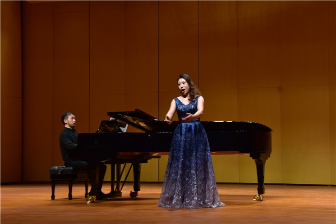 甘露露老师用她扎实的基本功和声情并茂的表演将《林中小鸟》(选自凯剧《崔夫曼的故事》奥芬已赫曲)和《灿烂与欢愉》(选自歌剧《老实人》伯恩斯坦曲)演绎的淋漓精致。一曲结束,观众的掌声久久不能停歇。