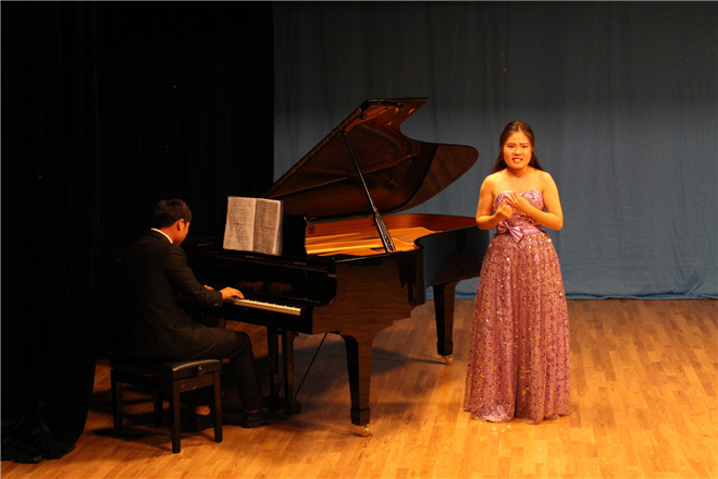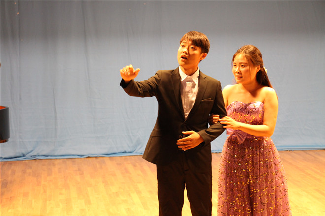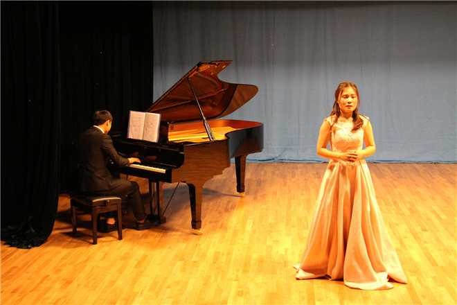 本次音乐会分为上下两半场,上半场为杨迪带来的三首声乐独唱和胡琴子的两首独唱。杨迪用发散的音型,配合含蓄的律感将《问》所表达的对国家前途和命运的担忧之情传达出来。《岁月悠悠》堪称是近代艺术歌曲中实现了中西音乐完美融合的典范,杨迪把它演唱的毫无差错。充满强烈戏剧性的《一抹夕阳红》,被胡迪演唱的淋漓尽致。胡琴子带来的一首欢快的《踏雪寻梅》,瞬间把人们带到了青少年员工骑着毛驴、踏着冬雪去欣赏梅花绽放的情景,而经典的云南民歌《小河流淌》则让人听后久久回味。