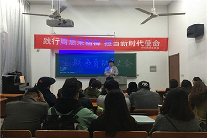 为贯彻落实党的十九大精神,深入学习习近平新时代中国特色社会主义思想,推进周恩来精神学习、展现学子新时代使命担当、弘扬新时代精神、锤炼提升老员工道德情操。4月14日晚,1603班全体成员在团支书丁子林同学的带领和组织委员郑超英同学的协助下,在A1-101教室举行“学习恩来精神、担当时代使命”观影活动,活动由丁子林,主持。