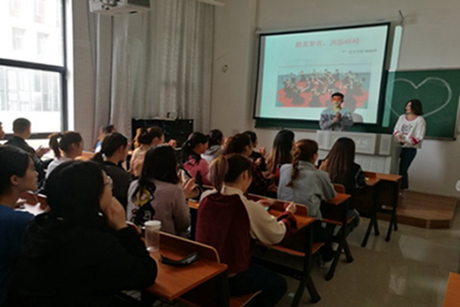 交流会开始,团支书对今年考研情况进行阐述并与同学们简单介绍此次活动的目的。接着陈萌萌同学向同学们讲述如何做好详实可行的考研计划,并结合自己的考研经历过程中的一些经验教训,分享一个自己的学习方法。然后进入到同学向学姐提问的环节,董玉冰同学提问:“学姐你好,请问考研大概需要提前多久准备?”学姐:“无论是“长跑或是慢跑”,只要安排合理,坚定信心,都会成功。”面对同学们的问题,学姐都一一耐心解答。最后,为了表示对学姐的感谢和祝贺,班长代表全班同学为学姐献上一束花。