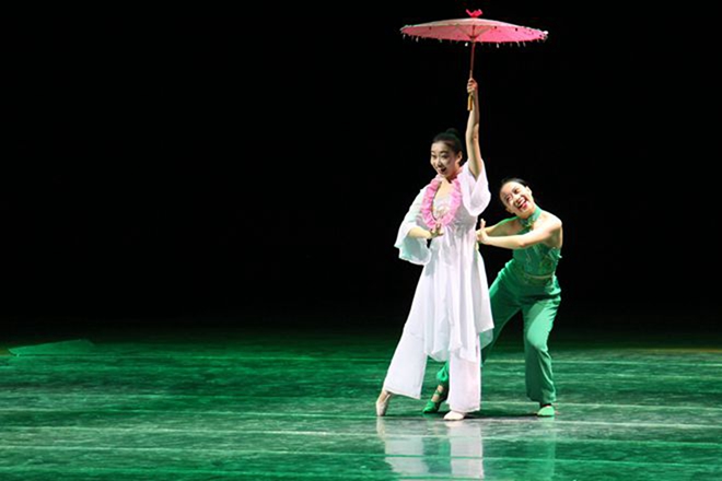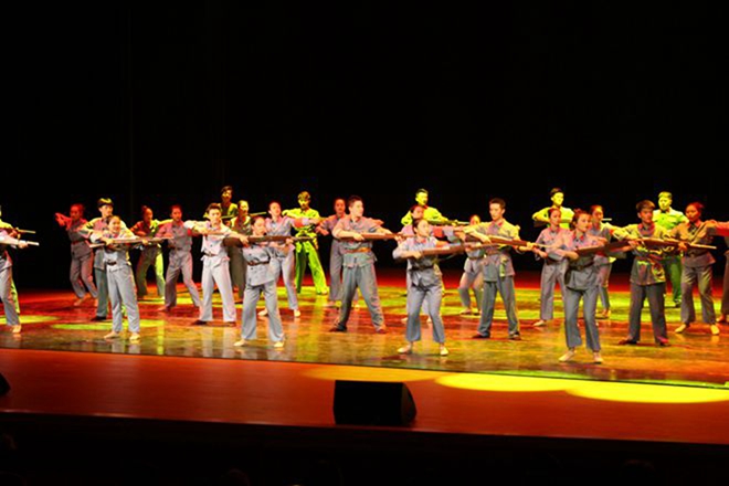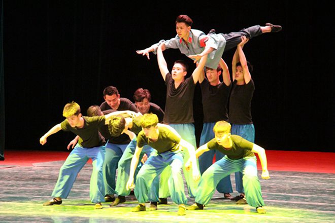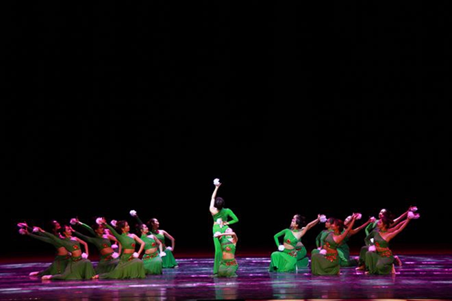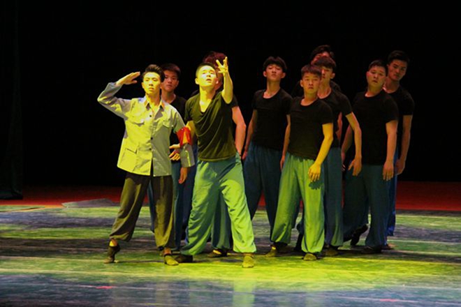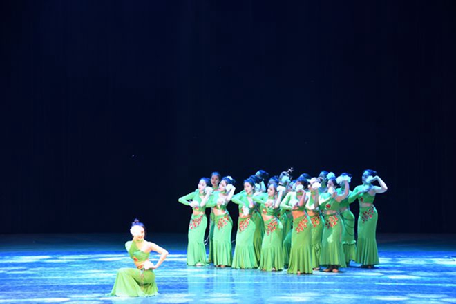 氤氲舒卷的淡墨演绎雅逸洒脱,灵动恣意的⽓质轻柔优美,看似符合女生的古典舞《水墨天书》却被鲍子航、刘建军等男生展现的如一缕清风,似一幅美画,给人无限的遐想。虫鱼鸟兽、春夏秋冬、山石沙海,女孩子们在《万物生》中用独特的舞姿,为大自然的鬼斧神工做出了最好的诠释。谈起大好河山,不得不让人想到那么一群人:中国人民解放军。群舞《南昌起义》与《红河谷•序》将那段历史再次重现,使人不由得发出军民一家亲的感叹!