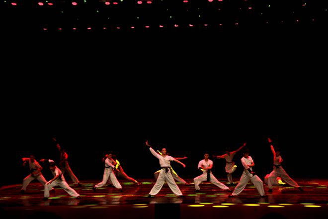 本场演出以最能表现舞蹈功底的技巧组合开场,有平转、倒踢、扑虎、大跳等高难度技巧,以及最后吕寅老师风火轮的点睛之笔,赢得了满堂彩。“爸爸,我想你,我想你,我想你,这思念让我痛彻心底……”黄才道与黄竹喧为大家带来男女双人舞《父亲》。默契的配合与准确的情感表达,感染了在座的每一个人:别因为忙就疏懒了他深沉的牵挂,别因为远就忘却了他⽆⾔的关怀。还有一些女孩子们也同样把她们对爸爸的思念融入到了舞蹈中,她们通过带来的群舞《缅桂花开朵朵香》告诉大家:爸爸我想您,这份思念亦如缅桂花,亦如缅桂花开时花香袭人!