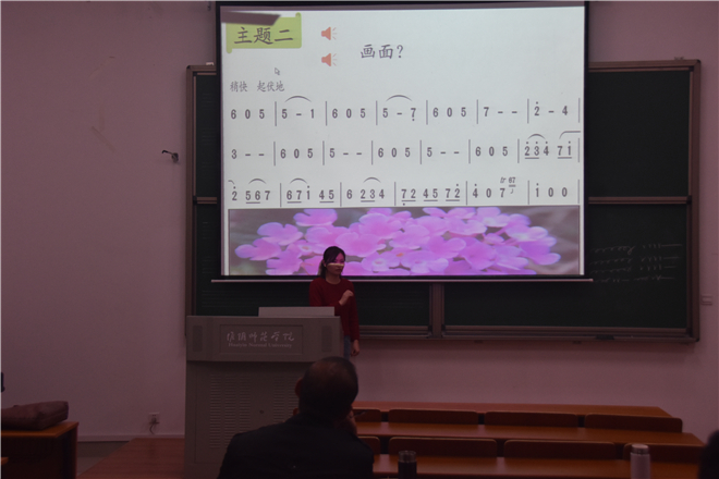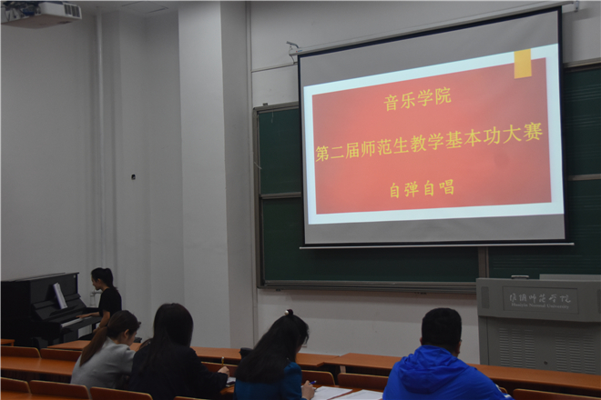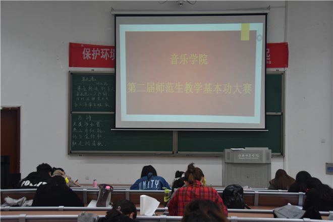 本次基本功大赛的共分为五个部分:特长展示、自弹自唱、粉笔字和钢笔字、模拟授课、口语表达。参赛选手们竭尽所能的展现出最好的自己。在特长展示环节,参赛选手通过对声乐、键盘、器乐等不同方向的展示,诠释着他们经过多年苦练所积累下的扎实功底。自弹自唱环节,是体现音乐专业员工基本功的一个重要环节,也是将来面临工作岗位时不可或缺的一项必备技能,参赛选手们依旧不负众望。模拟授课环节,选手们用活泼而不失沉稳的风格,以生动形象,丰富多彩的形式,展现着独特的课堂魅力。不得不说的是粉笔字和钢笔字,易折易断的粉笔在选手的手下刚劲有力、隽秀挺拔,钢笔更是笔过留痕,不由使人流连于黑白穿梭的字里行间。而后的口语表达环节,更是体现出了淮师学子的自信与博学,参赛选手们以现场抽到的简单的几句话为轴,侃侃而谈,引人入胜。