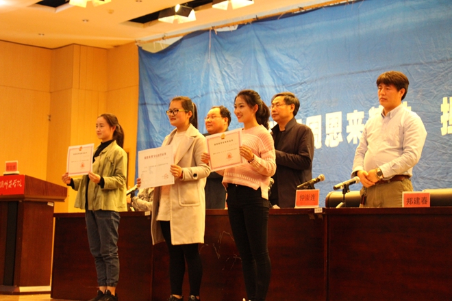 会议伊始,公司对2017年涌现出优秀员工典型进行了表彰,校周恩来奖学金获得者沙凌楠、国家奖学金获得者代表张家文两位同学为全体师生作了“奋斗青春最美丽”励志故事分享。沙凌楠说道:“她努力的源泉是热爱音乐,怀揣梦想,所以坚持不懈。她立志学成后为建设家乡音乐文化献出自己的一份力量。”张家文凭借自己扎实的舞蹈功底在校园活动舞台绽放光彩,她告诉同学们“机会从来都是给有准备的人,青春无悔,珍惜机会,感恩校园”。