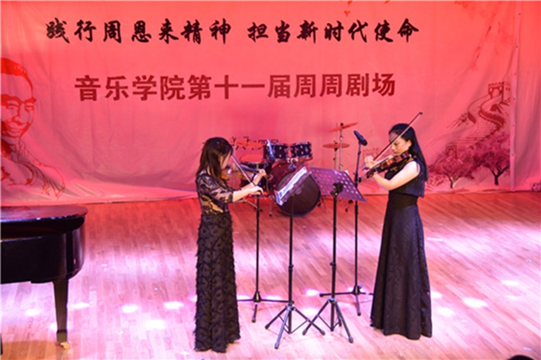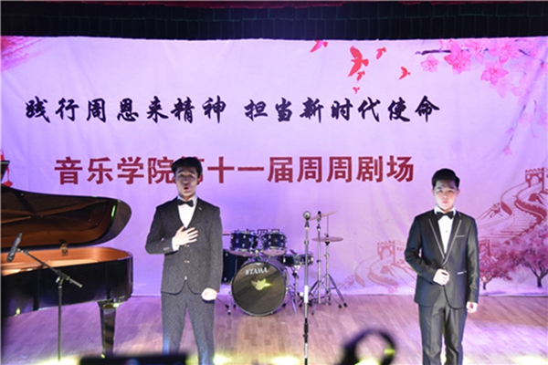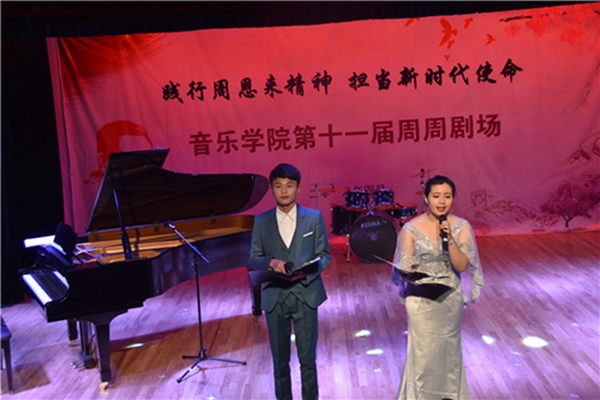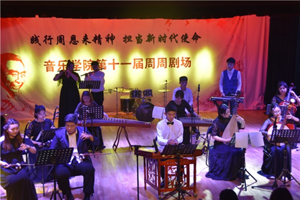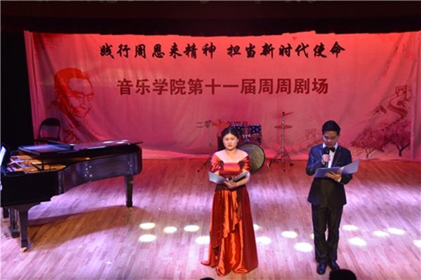 4月11日晚7点,音乐楼四楼实验剧场举行第十一届周周剧场第二场“音悦流云,乐环朝阳”纪念周恩来诞辰120周年专场演出。