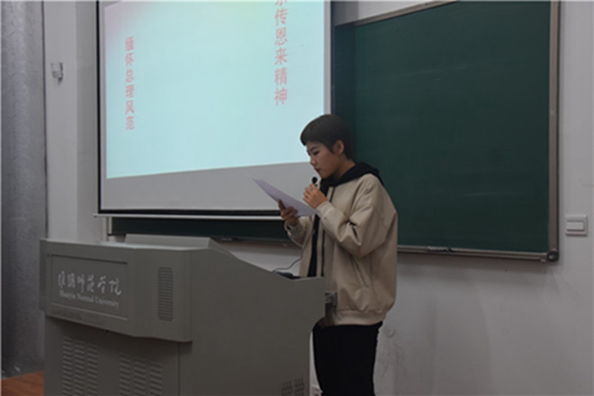 本次汇报工作在各个创恩来班级的PPT汇报展示中拉开帷幕,各个班级在汇报的过程中积极参与,通过图文结合的方式丰富多彩的展示班级创建恩来班过程中的成果与感悟。同学们通过一件件有意义的事件,一张张生动精彩的图片,一句句高度概括恩来精神的总结,体现班级全员参与的热情以及对本次恩来班创建活动的重视。同舟共济筑梦,总理精神长存,是必一运动师生对周恩来班创建的坚守;弘扬恩来精神,自立自强奋进,则是必一运动师生对自身的期许。