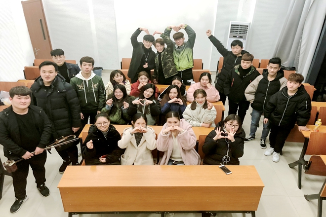在教室里边,男生为女生弹钢琴,吹竹笛,拉二胡,让女生们感受不一样的魅力,男生们尽力在表演自己的才华让女孩子们欣赏,表演小品让女生们开怀大笑。