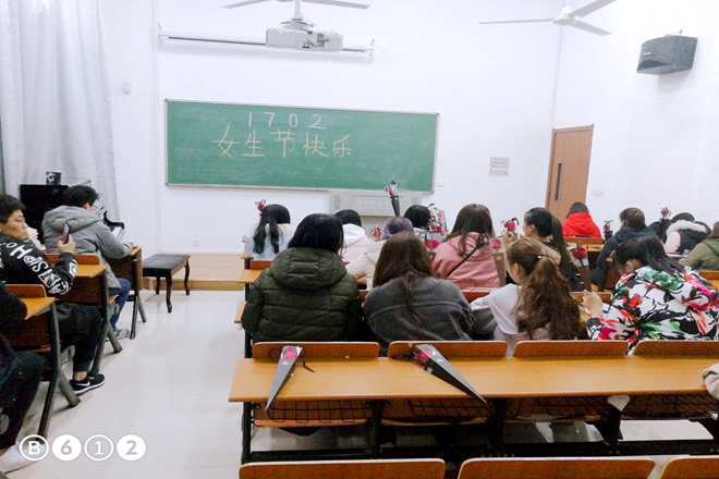 班委为全班女生准备了惊喜礼物,玫瑰使冬夜变得温暖和浪漫,开展了主题班会活动,通过音乐和女生之间的聊天互动使气氛愉快。在活动最后,女生们一起合影留下这个年纪,这个大学岁月中的时光,一段最值得被纪念的岁月,或许当她们几年后或者十几年后再想起,也是永远都美着,胜过太阳月亮星星玫瑰以及一切美好的事物。