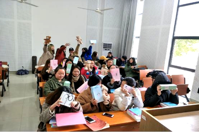在这一次的活动中,男生为女神们精心挑选了礼物,并在女神节当天由班长和心理委员将女神们“秘密”的叫到了教室中,给女神们一个温馨的惊喜,虽然礼物并不贵重,但是充分的体现了男生对班中女神们的关怀和爱护,女神们也纷纷表示,是真的被这一次的惊喜所感动了。