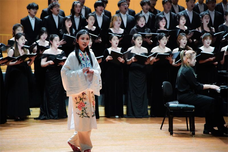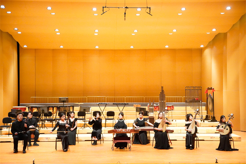 当晚的音乐会精彩纷呈,分为上下半场。上半场以合唱为主,曲目包括《大鱼》《我有一个装满星星的口袋》《菊花台》《Zitti Zitti》《山中月》《走进美丽,走进神奇》《没有共产党就没有新中国》等经典与原创作品,下半场以民乐合奏为主,演奏作品有国家级非遗楚州十番锣鼓的代表作《咏花》《红楼梦》《闹新春》等民乐经典,还有民族室内乐的佳作《敦煌》。音乐会以《我的祖国》作为结尾,音乐与歌声交织,深深地激发了现场观众浓烈的爱国之情,将现场气氛推向高潮。