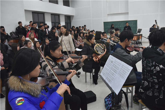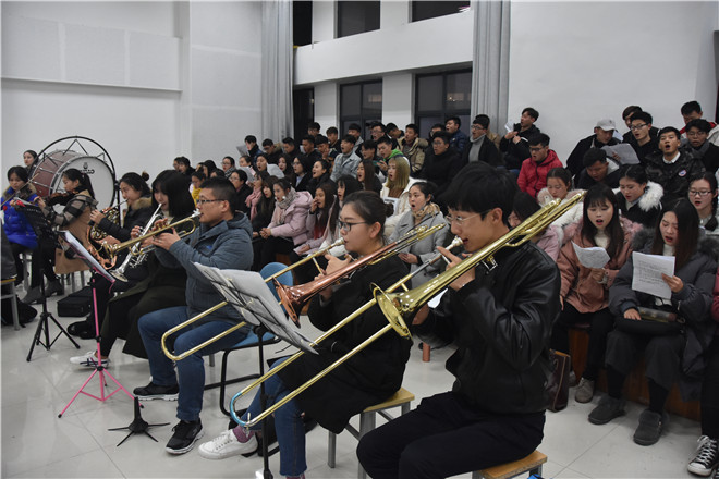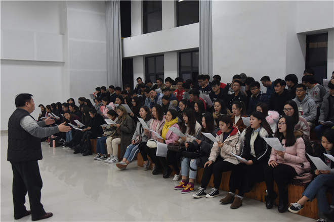 “大江歌罢掉头东,邃密群科济世穷。面壁十年图破壁,难酬蹈海亦英雄……”音乐楼传来动听悦耳的合唱和管乐合奏声,曹教授从音乐教学法、节奏的训练、合唱声音的训练、合唱指挥、钢琴伴奏、管乐合奏等多个不同的角度对员工进行指导,并针对员工合唱排练存在的实际问题进行有针对性的建议及指导,结合形式多样的教学活动,使员工直观了解课堂中所学在实践中的应用方法和效果。同时,曹老师鼓励同学们持之以恒学习,充实自己,发掘自身潜力,不断锻炼自己,提升自己。