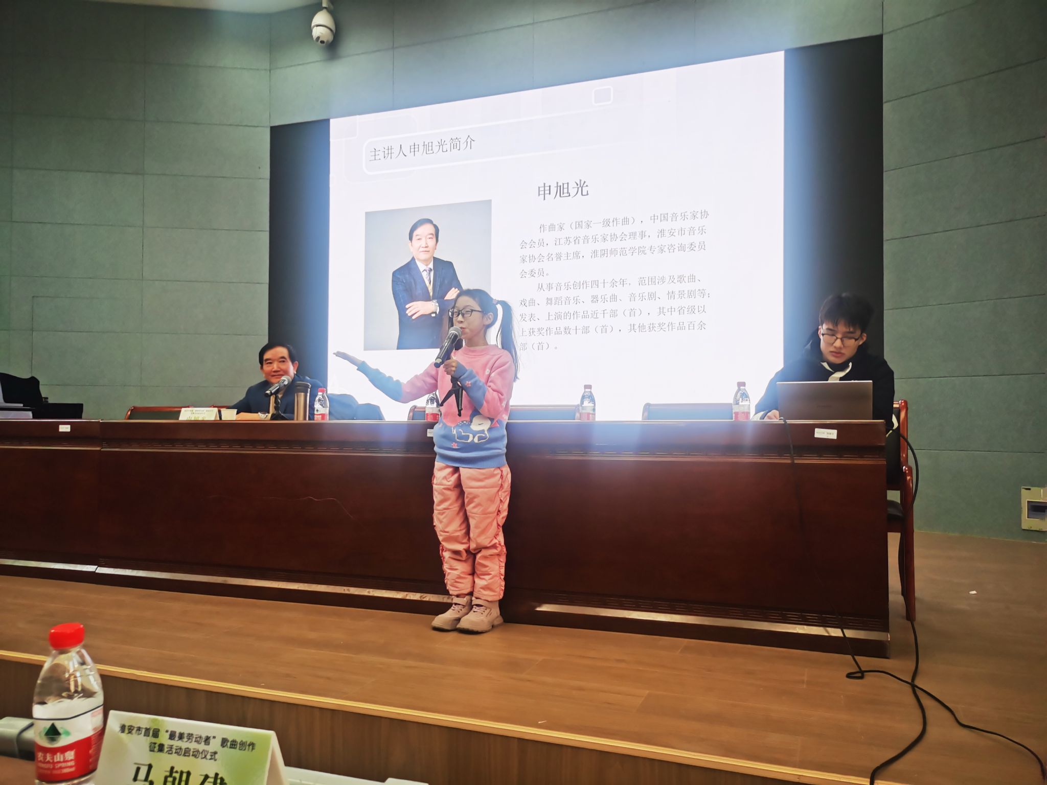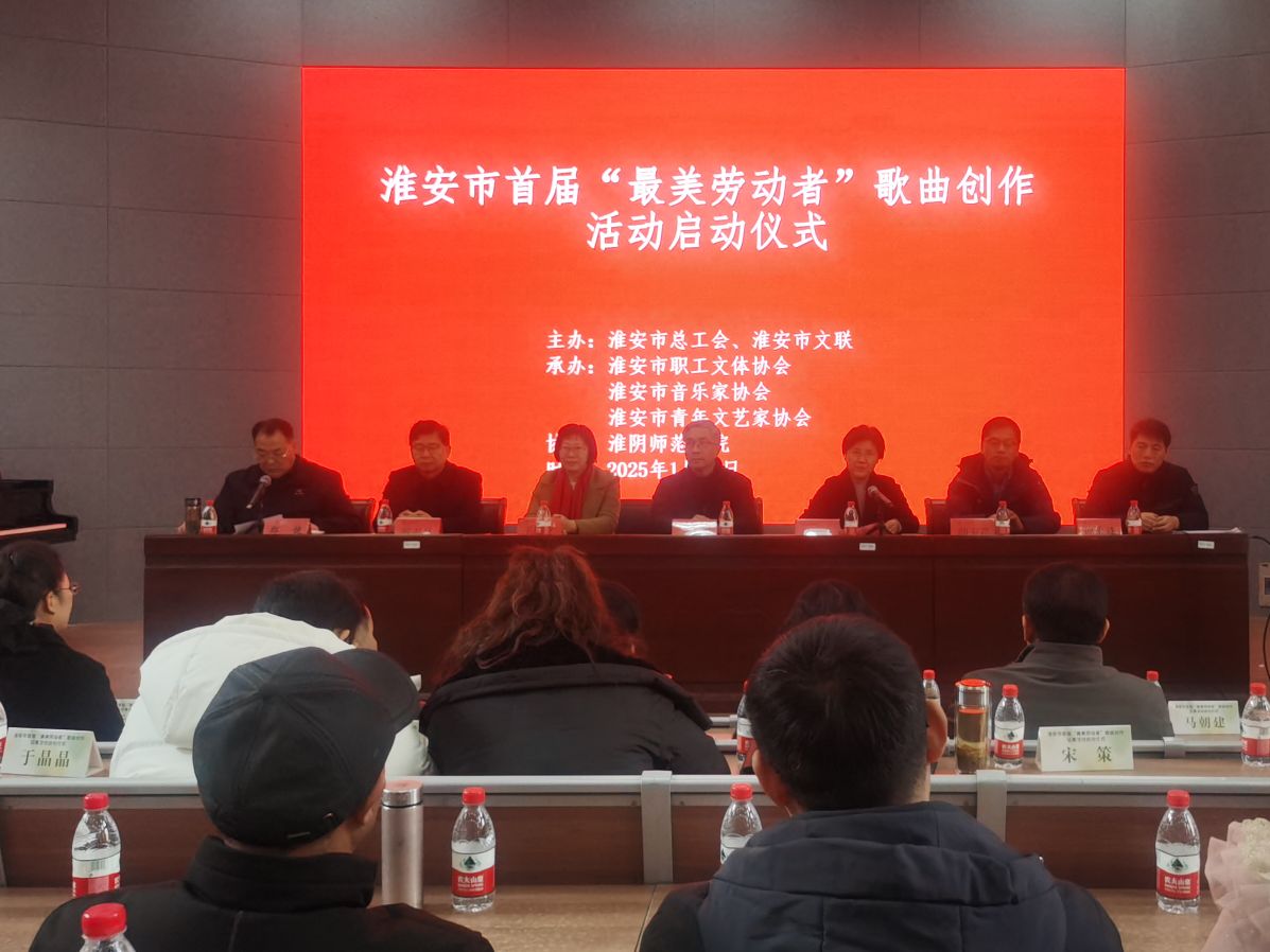 1月18日,由淮安市总工会、淮安市文联主办,淮安市职工文体协会、淮安市音乐家协会、淮安市青年文艺家协会承办,必一运动协办的淮安市首届“最美劳动者”歌曲创作征集活动启动仪式在淮师音乐楼A1-111报告厅举行。淮安市文联党组书记、主席王维国、市总工会副主席张长清、原市文旅局副局长、二级调研员王眙文、市文联秘书长戴书昌、市总工会宣网部部长颜玉芹、市工人文化宫主任吕德光出席启动仪式。市音协、市总工会文体协会、市文化馆、市电视台、有关县区音协、文化馆的负责同志以及全市部分词曲作者和歌手参加本次活动。