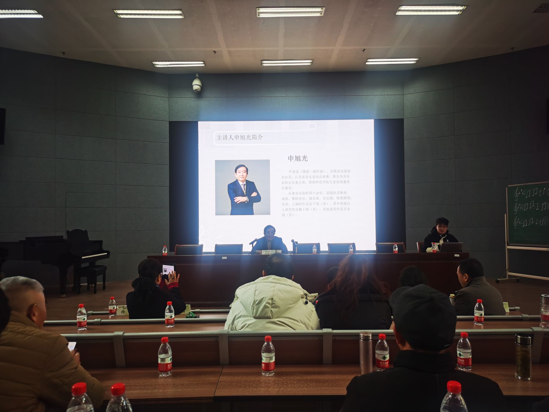 启动仪式后,国家一级作曲家申旭光为现场嘉宾开展劳动歌曲创作专题讲座。他结合自身的音乐创作经验,通过对作品的歌词的分析、作曲中常见问题、作品中地方音乐风格的呈现以及作品结构的处理等多个维度,详细的阐述了作品创作中的设计策略。在自由研讨环节,与会嘉宾充分研讨、交流歌曲创作的经验和思路,为活动的顺利开展打下了基础。