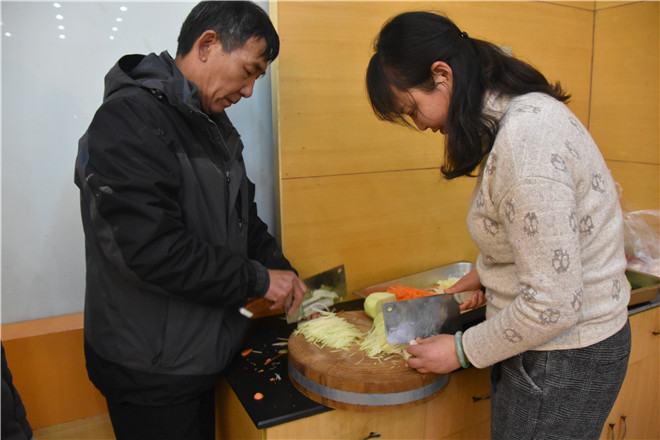参赛选手以个人为单位,个个精神饱满,每位选手都在现场尽情展示精湛厨艺,拿出自己的看家本领。有炒、炖、拌、炝、煎、烧方法一应俱全,有番茄炒蛋、狮子头、麻辣炒鸡、平桥豆腐等等淮扬菜系、鲁菜风味汇集南北,冷热交替,荤素均匀。比赛过程中,各组选手都精心准备着自己的参赛作品。香气四溢的现场还穿插一些互动游戏,调动了评委及现场观众的积极性。评分过后,选手们品尝着自己的劳动果实,满满的喜悦涌上心头。