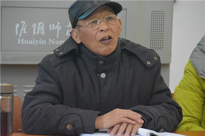 省优秀文化老人候选人朱树森同志用“以德润心、以文化人”及饱含怀念总理的真情,结合自身的创作经历与同学们分享恩来故事。他从总理幼时敬老尊贤、全心全意为人民服务、心念淮安人民的故事娓娓道来。